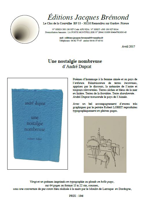 Biographie d’André Duprat pour les Editions Jacques Brémond