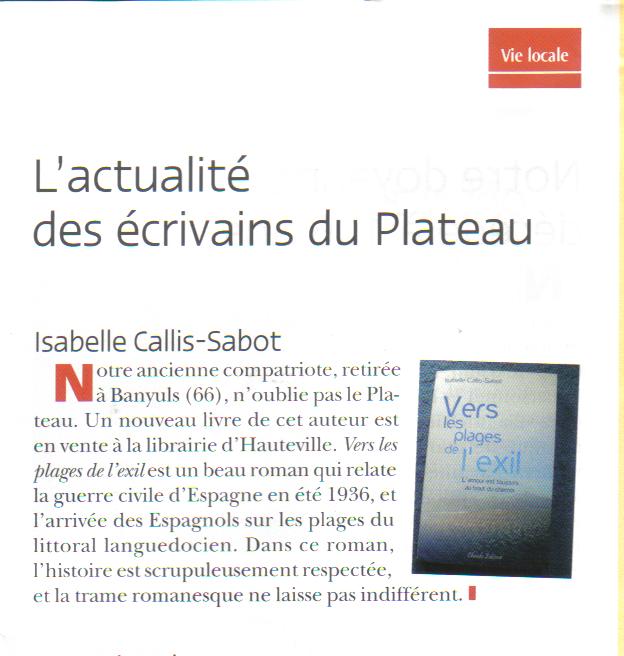 Article paru dans l'Écho du Plateau, Juillet 2012.
