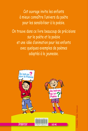 Faire découvrir la poésie aux enfants, c’est leur ouvrir la porte d’un monde imaginaire ; c’est leur faire connaître les rimes, les vers, les strophes. Le langage poétique est fait d’images, de rythme, de sonorité et d’émerveillement. La poésie permet à l’enfant d’être attentif, créatif, tout en lui apportant le désir de lire. Ce livre s’adresse aux enfants dès la maternelle.